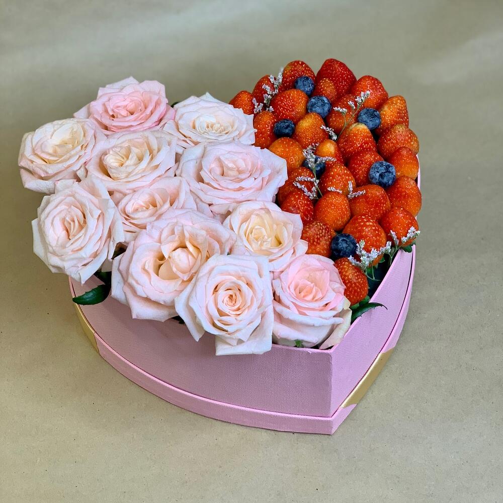 У нас можно заказать Цветы в коробке и клубникой с доставкой по Москве.