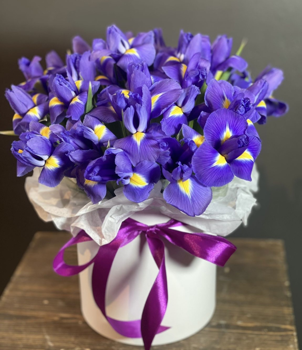 У нас можно заказать Ирисы в коробке №163 с доставкой по Москве.