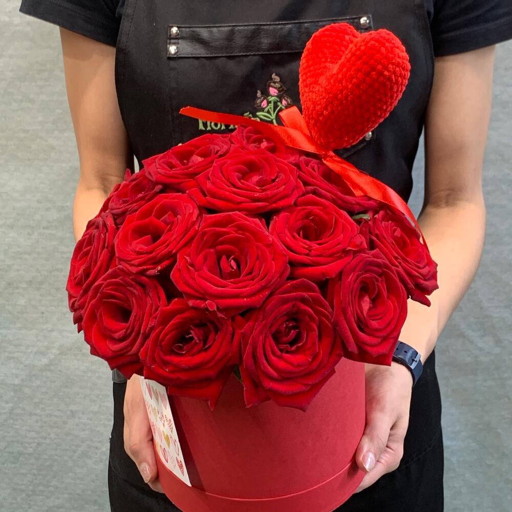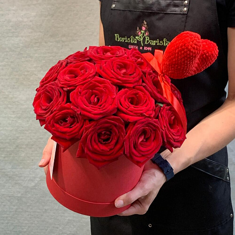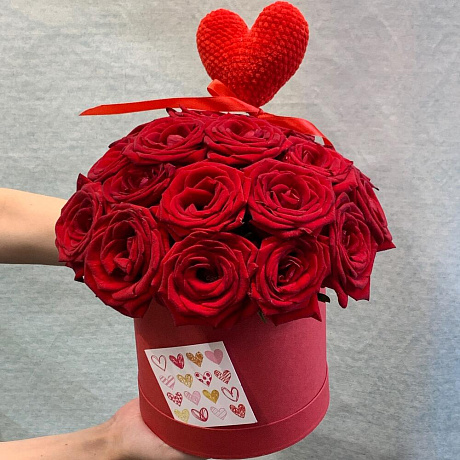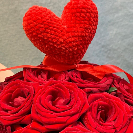 У нас можно заказать Композиция из красных роз с вязаным сердцем «Романтика» с доставкой по Москве.