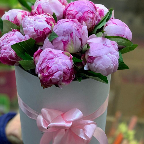 У нас можно заказать Коробка с пионами Анси с доставкой по Москве.