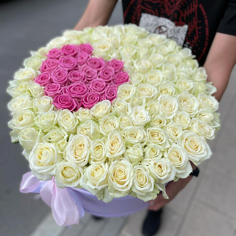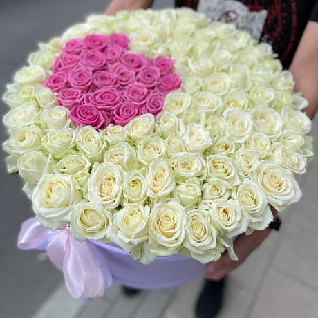 <p>На фото - Коробка сердце в розах. В составе данной композиции: Роза белая - 80 шт.; Роза розовая - 21 шт.; Коробка шляпная - 1 шт.; Оазис флористический - 3 шт.; Лента атласная - 1 шт..</p> <p>На сайте "Доступная доставка цветов" Вы найдете большой выбор недорогих букетов, цветочных композиций для любого повода.</p> <p>У нас можно заказать Коробка сердце в розах с доставкой по Москве.</p>