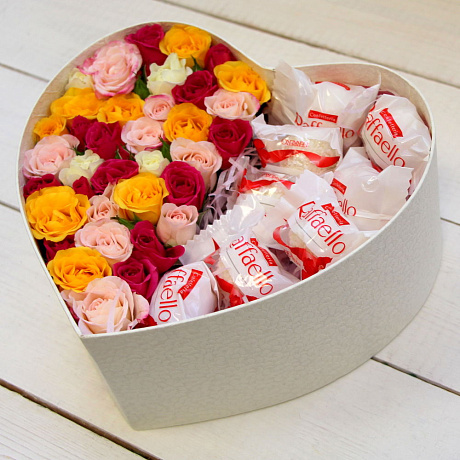 У нас можно заказать Коробка в виде сердца с розами и Рафаэлло с доставкой по Москве.
