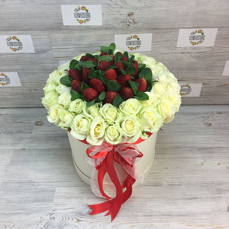 У нас можно заказать Коробки с цветами. Роза белая. Клубника. Мята. N86 с доставкой по Москве.