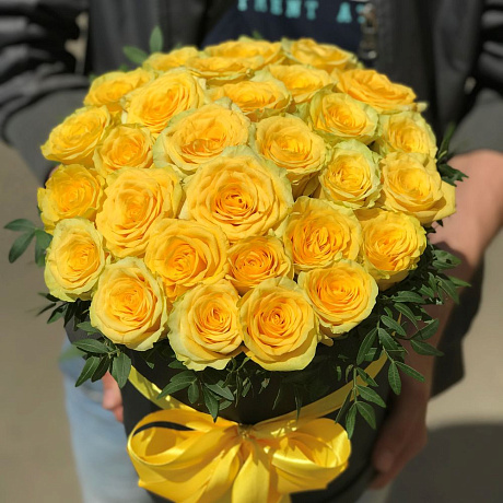 У нас можно заказать Коробки с цветами. Розы. 29 шт .Желтые Розы. N91 с доставкой по Москве.
