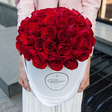 <p>На фото - Красные розы в шляпной коробке Grand WHITE. В составе данной композиции: Red kenya - 35 шт.; Ваза - 1 шт.; Шляпная коробка - 1 шт.; Транспортировочная коробка - 1 шт..</p> <p>На сайте "Доступная доставка цветов" Вы найдете большой выбор недорогих букетов, цветочных композиций для любого повода.</p> <p>У нас можно заказать Красные розы в шляпной коробке Grand WHITE с доставкой по Москве.</p>