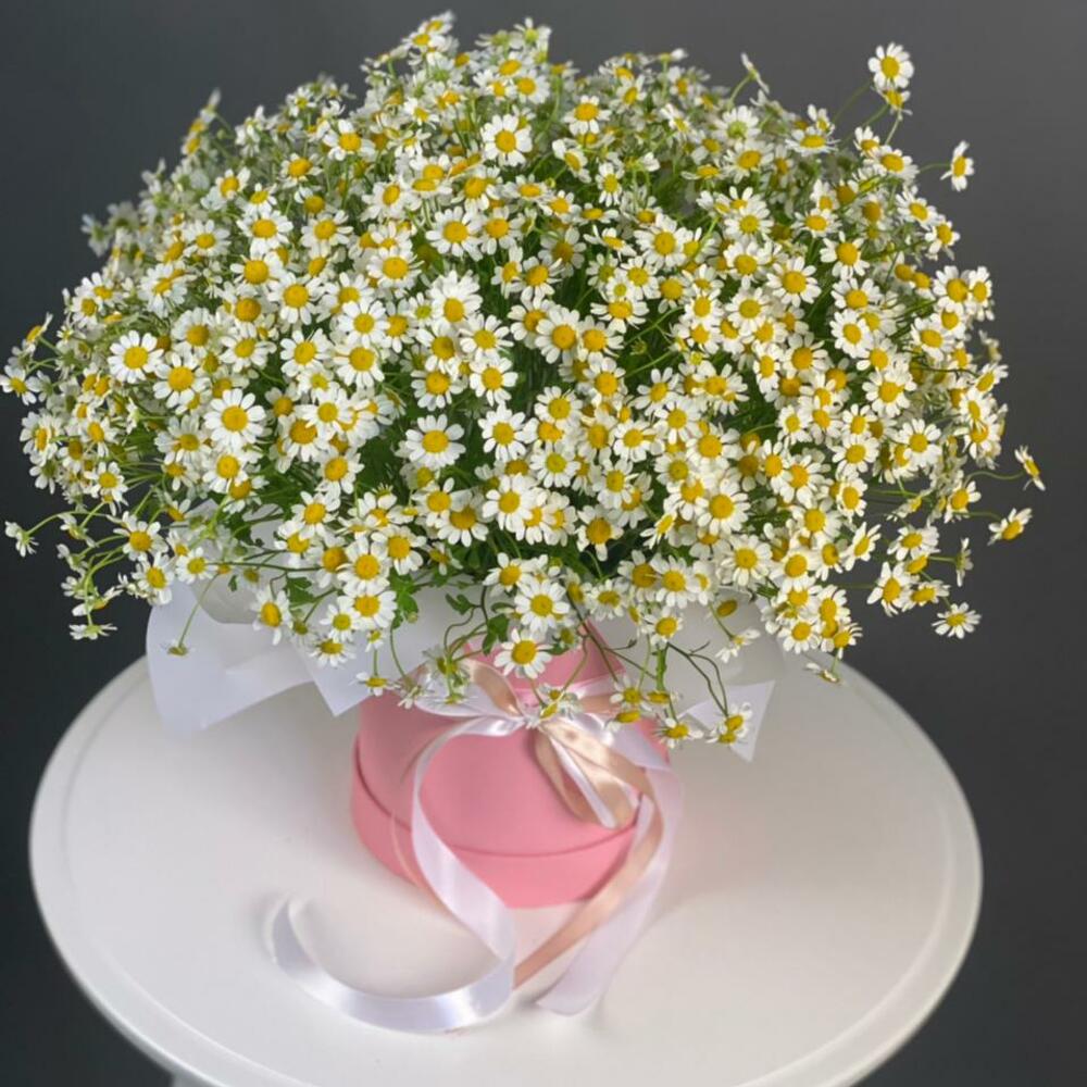 На фото - Букет "Ромашки" №181. В составе данной композиции: матркария - 20 шт.; Коробка - 1 шт..