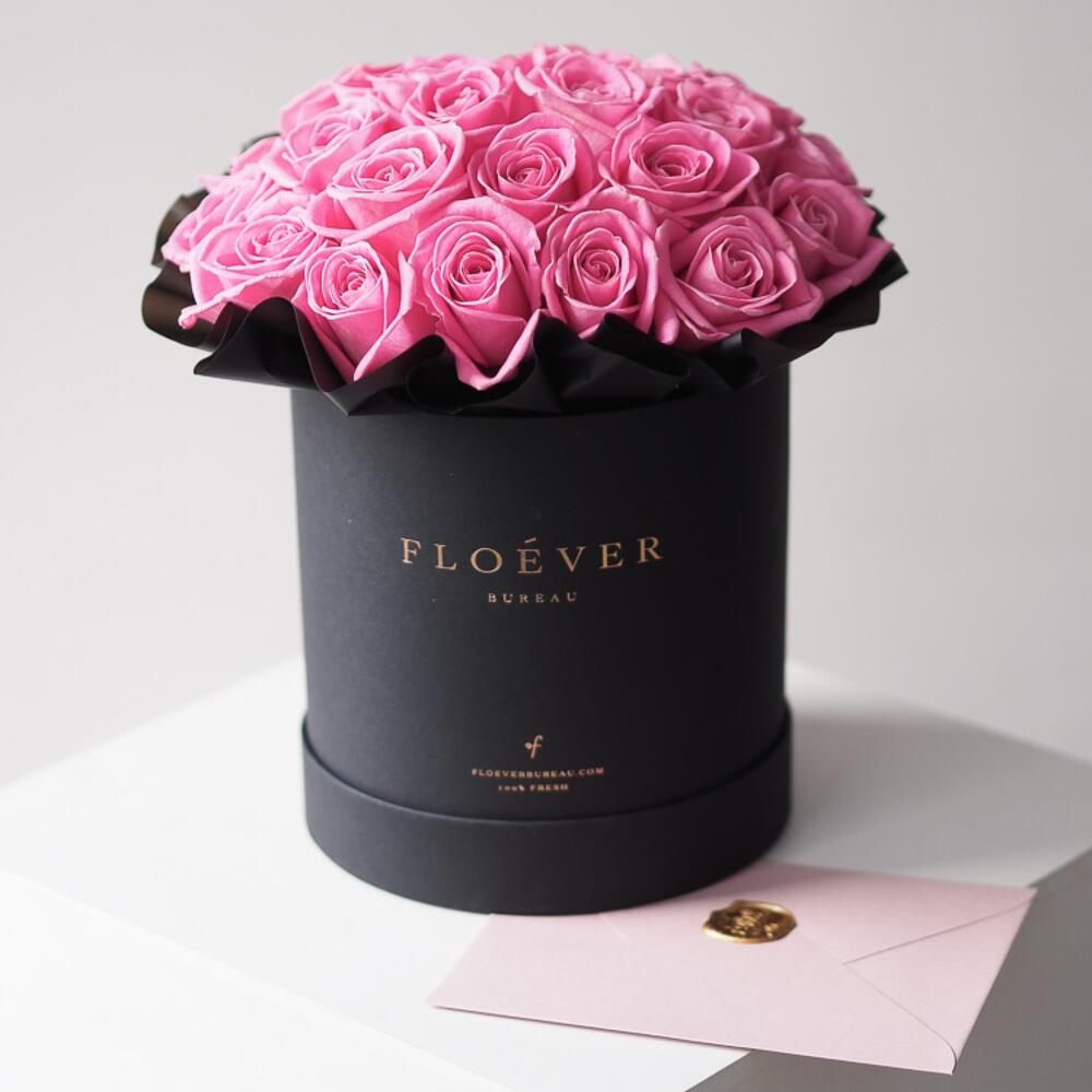 На фото - Роза Аква в черной коробке М. В составе данной композиции: Роза аква - 19 шт.; Шляпная коробка - 1 шт..