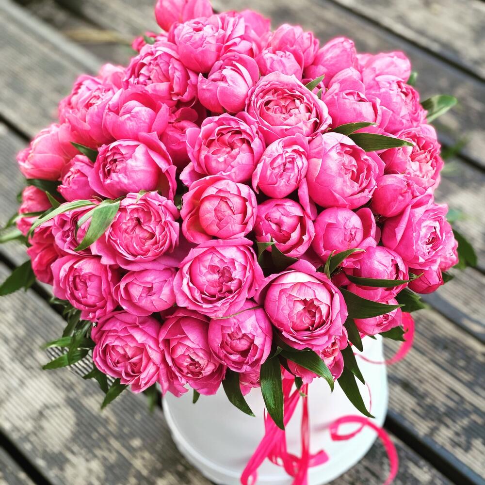 У нас можно заказать Роза пион в коробке №161 с доставкой по Москве.