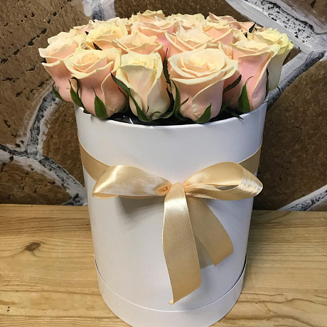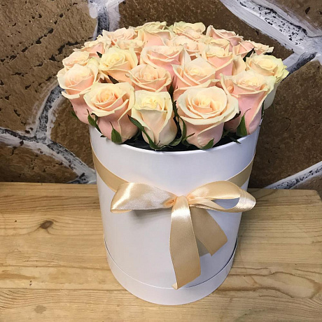 У нас можно заказать Шляпная коробочка с кремовыми розами с доставкой по Москве.