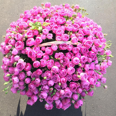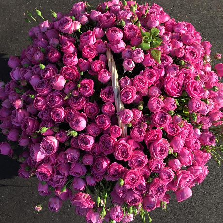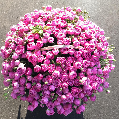 На фото - Букет цветов "Ласковая весна". В составе данной композиции: Misty Bubbles пионовидная роза - 101 шт.; Корзина плетеная - 1 шт.; Оазис флористический - 6 шт.; Открыточка с вашими пожеланиями - 1 шт..