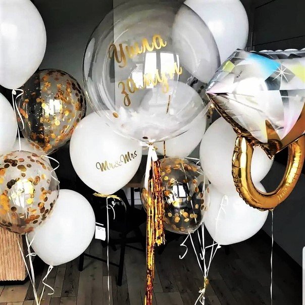 Композиция из шаров "Ушла замуж" — отличный выбор для подарка! На сайте вы найдете красочные фотографии, которые помогут сделать выбор. Цена букета — 6400 руб.