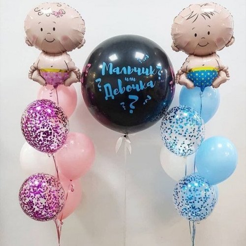 <p align="justify">Кто родится, мальчик или девочка? Вы можете ответить на этот вопрос не обычным способом. В шаре спрятаны конфетти или шарики меньшего диаметра того цвета, какого пола будет ребенок. Лопнув шарик все узнают ответ!!!</p> <p align="justify">Это весело и оригинально! </p>