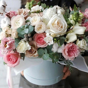 Композиция цветов Аметист в шляпной коробке Тиффани №732